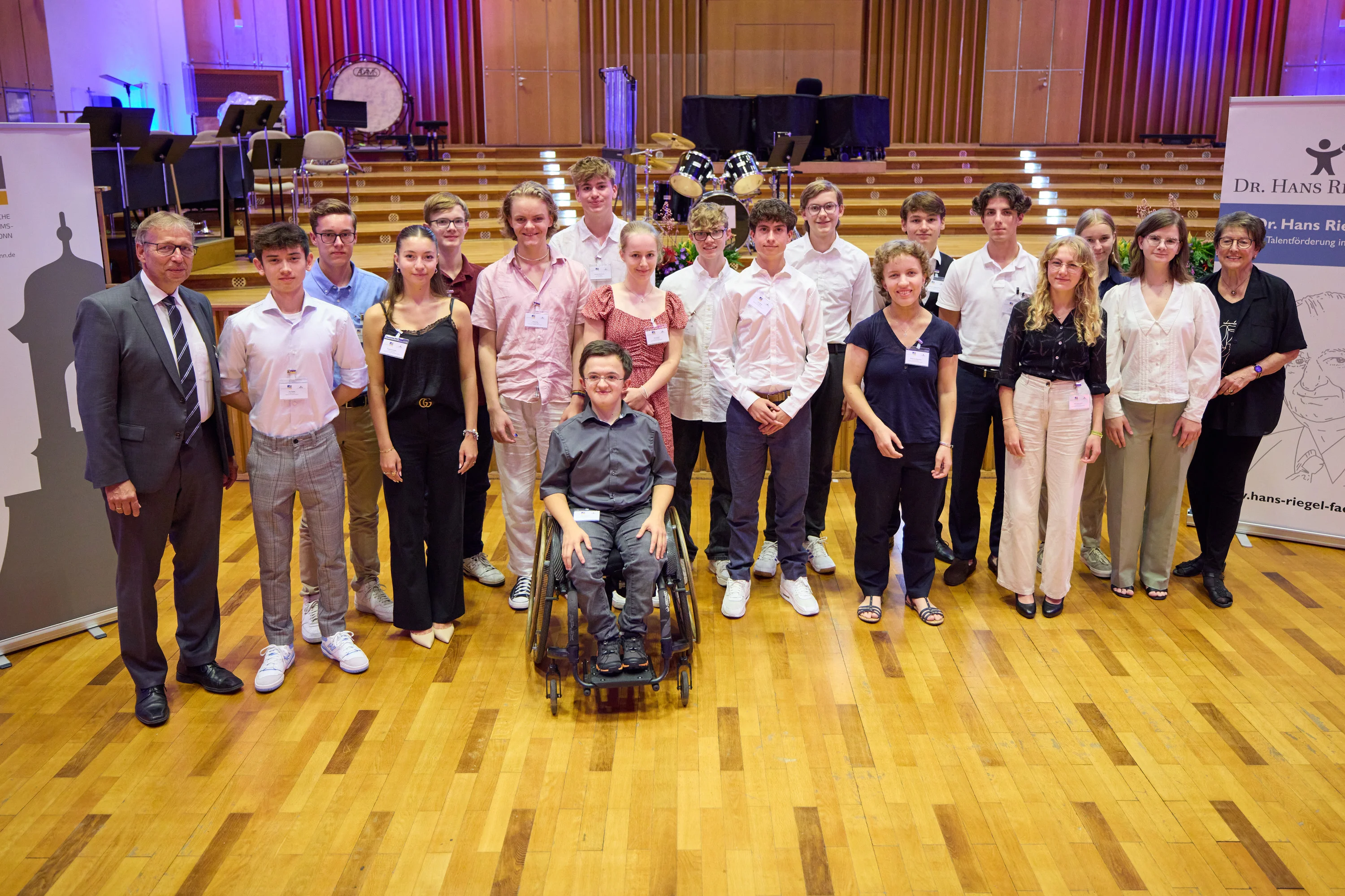 (Erste Reihe) Prorektor für Studium, Lehre und Hochschulentwicklung Prof. Klaus Sandmann, Joe Decker, Elisabeth Schröder, Henry Sorg, Timon Graßmann (sitzend), Clara Strauß, Philipp Irsen, Leo Leutner, Maila Anna Magnussen, Mina Heimerzheim, Liv Franca Florentina Hille und Vorständin Dr. Hans Riegel-Stiftung Prof. Ingeborg Henzler. Zweite Reihe: Jasper Königschulte, Nils Schönhoff, Jonathan Werkhausen, Laslo Hauschild, Martinus Raphael Conradi, Tarik Asaad und Emily Brockmeier.