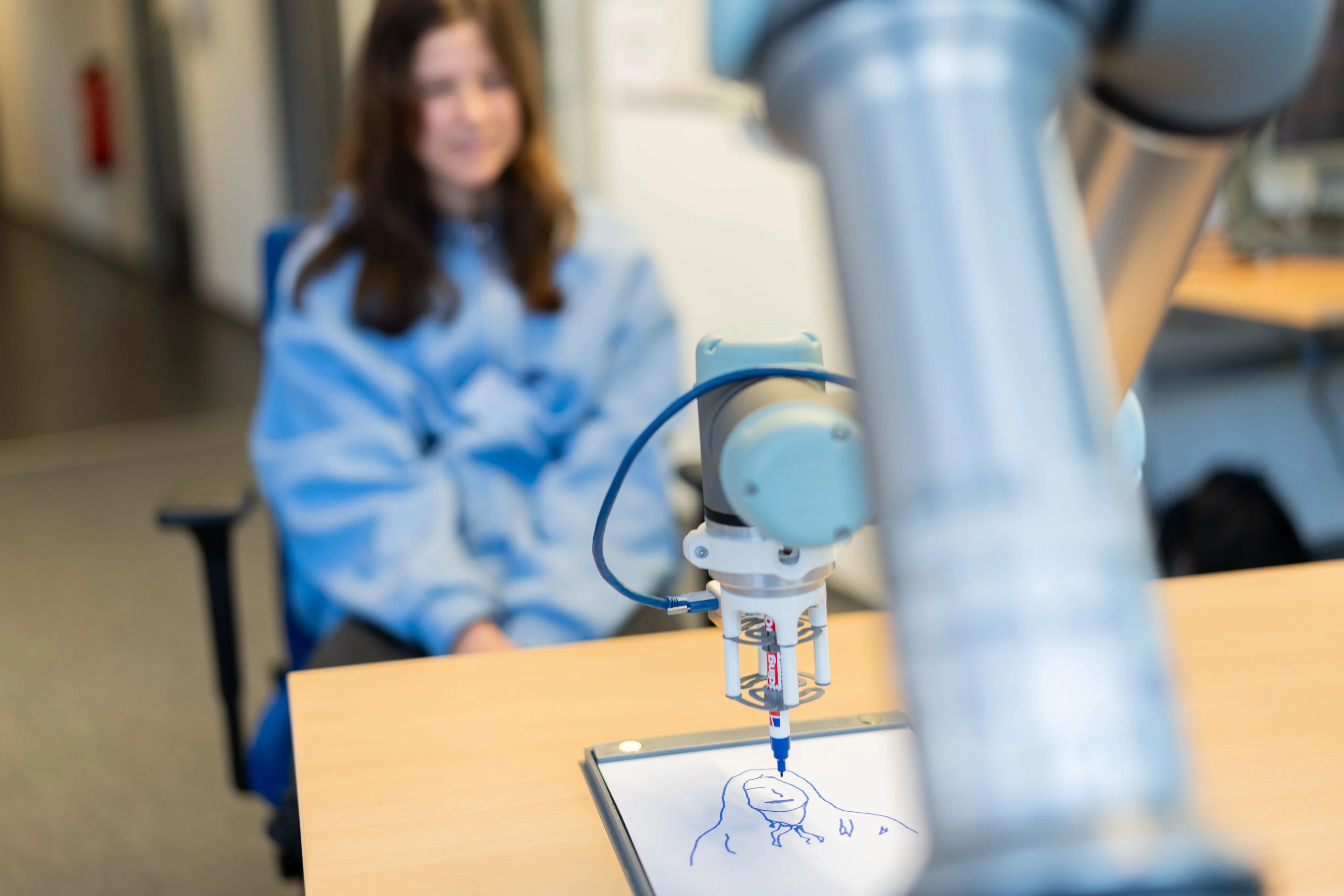 können sich Besucherinnen und Besucher im Informatik-Zentrum der Universität Bonn vom Roboter „Sketch-O-Bot“ zeichnen lassen.