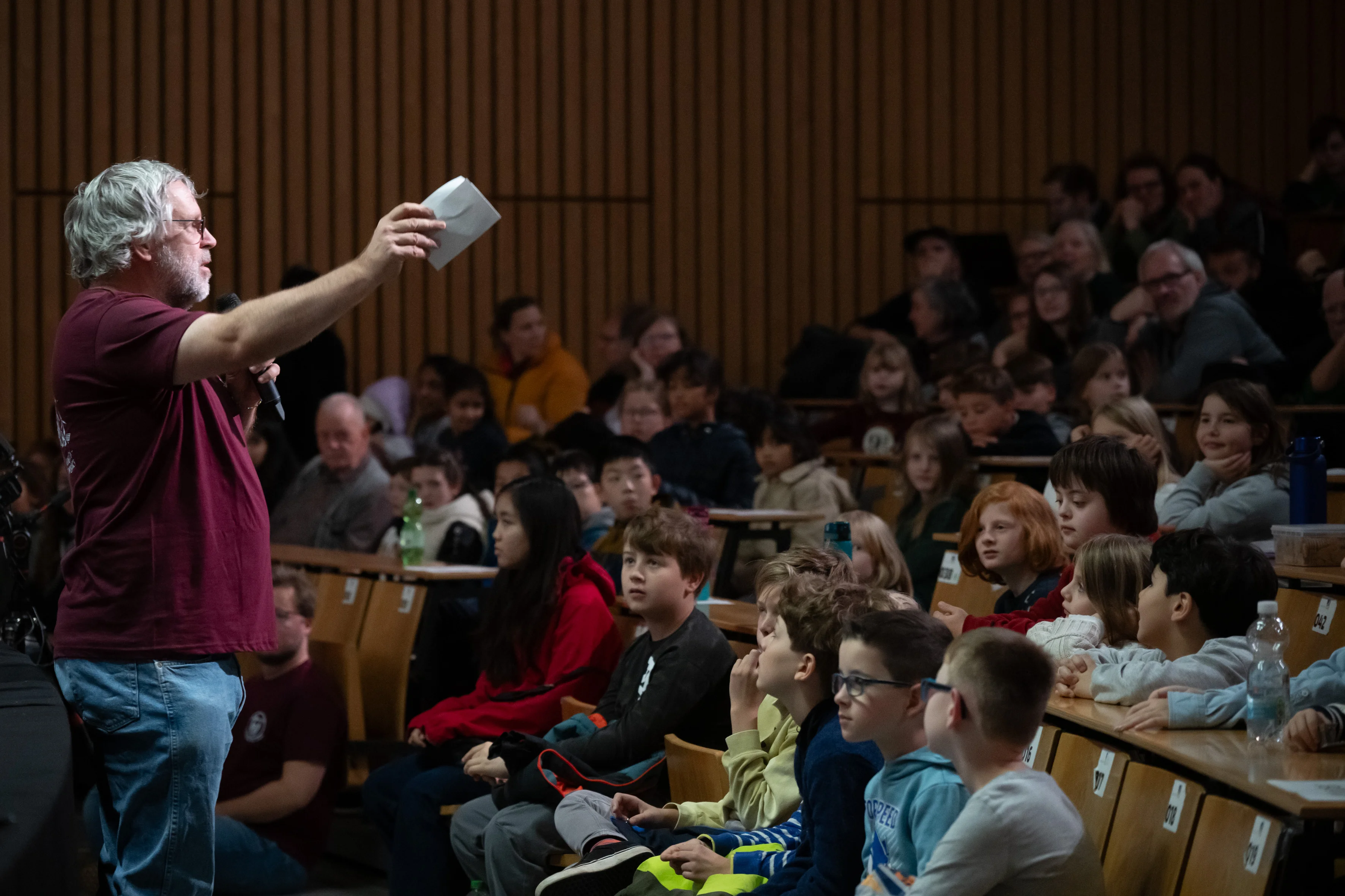 Professor Herbert Dreiner, Leiter des Phyusicals, kündigt das Programm an. Physikshow_10_2025_BFro_002.webp image/webp Typ image/webp Dimension Abmessungen 3543x2362 Size Dateigröße 688.7 KB Herunterladen Bild in voller Größe anzeigen…