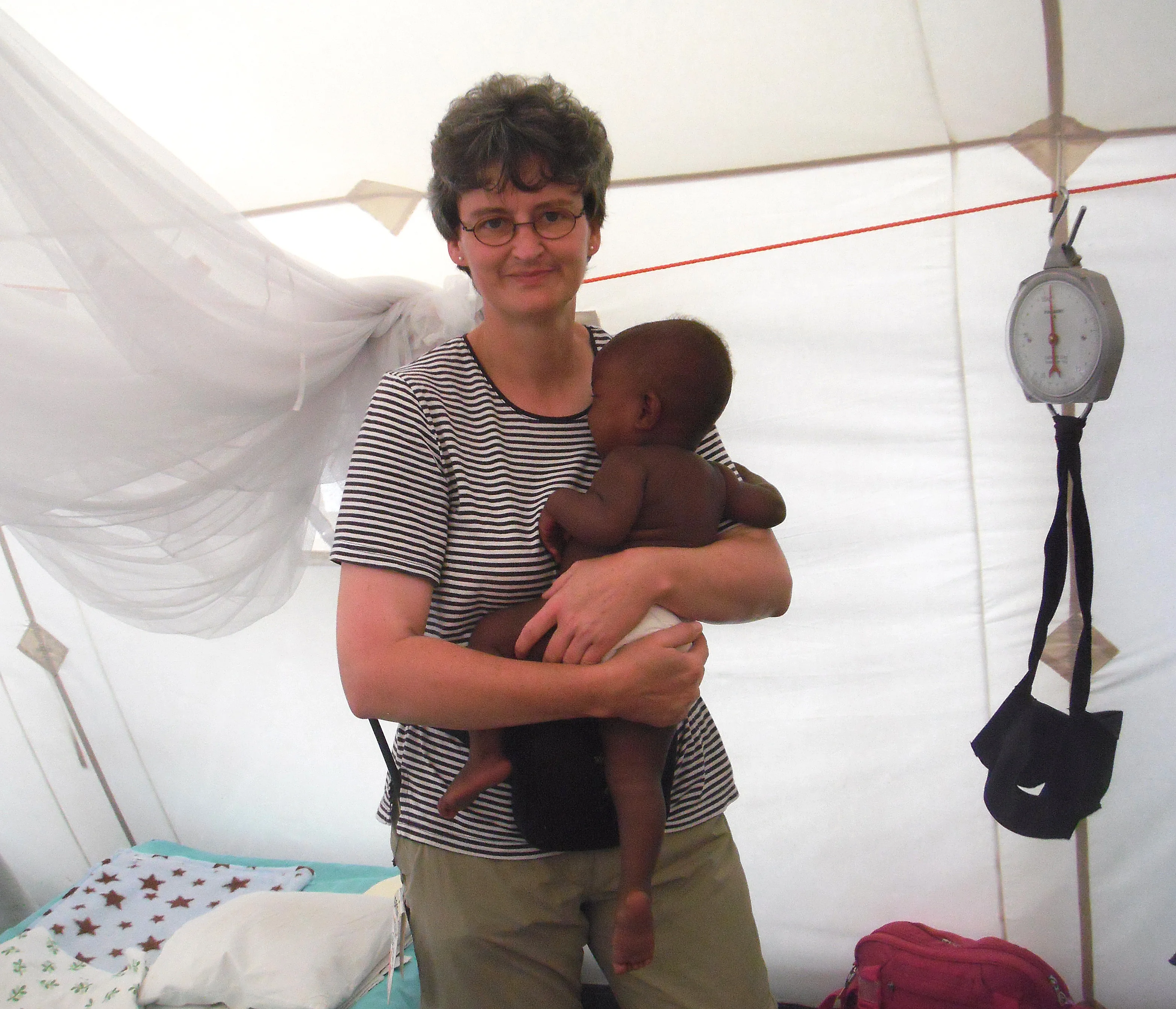 Krankenschwester Barbara Scholl mit einem kleinen Patienten;