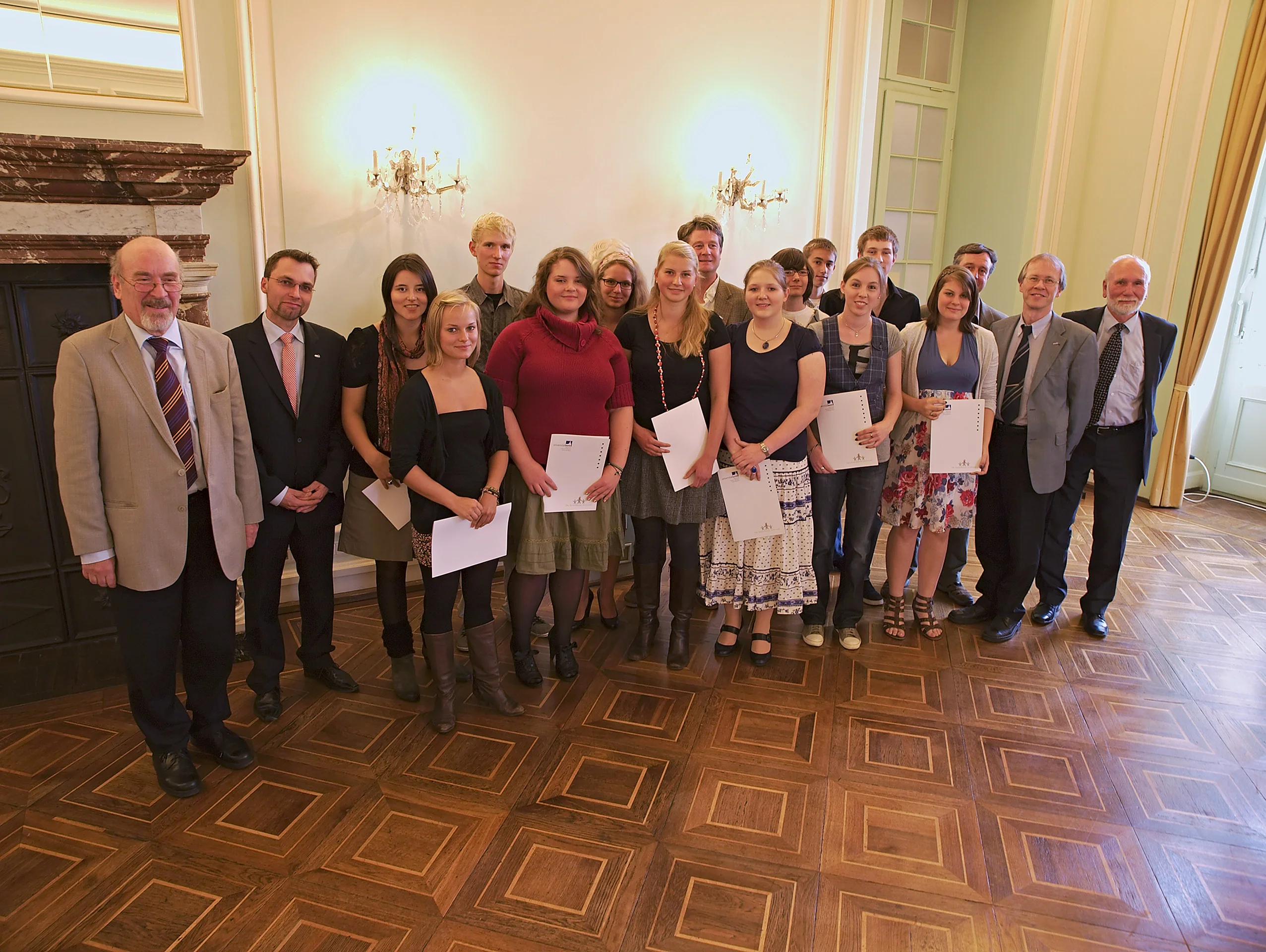 ... und den Fachgutachtern der Uni Bonn (v. l.: Professor Dr. Hans-Dieter Laux (Geographie), Dr. Thoralf Räsch (Mathematik), Professor Dr. Volker Knoop (Biologie), Professor Dr. Gerhard von der Emde (Biologie), Professor Dr. Johannes Beck (Chemie), Wolfgang Schmiedecken (Geographie)).