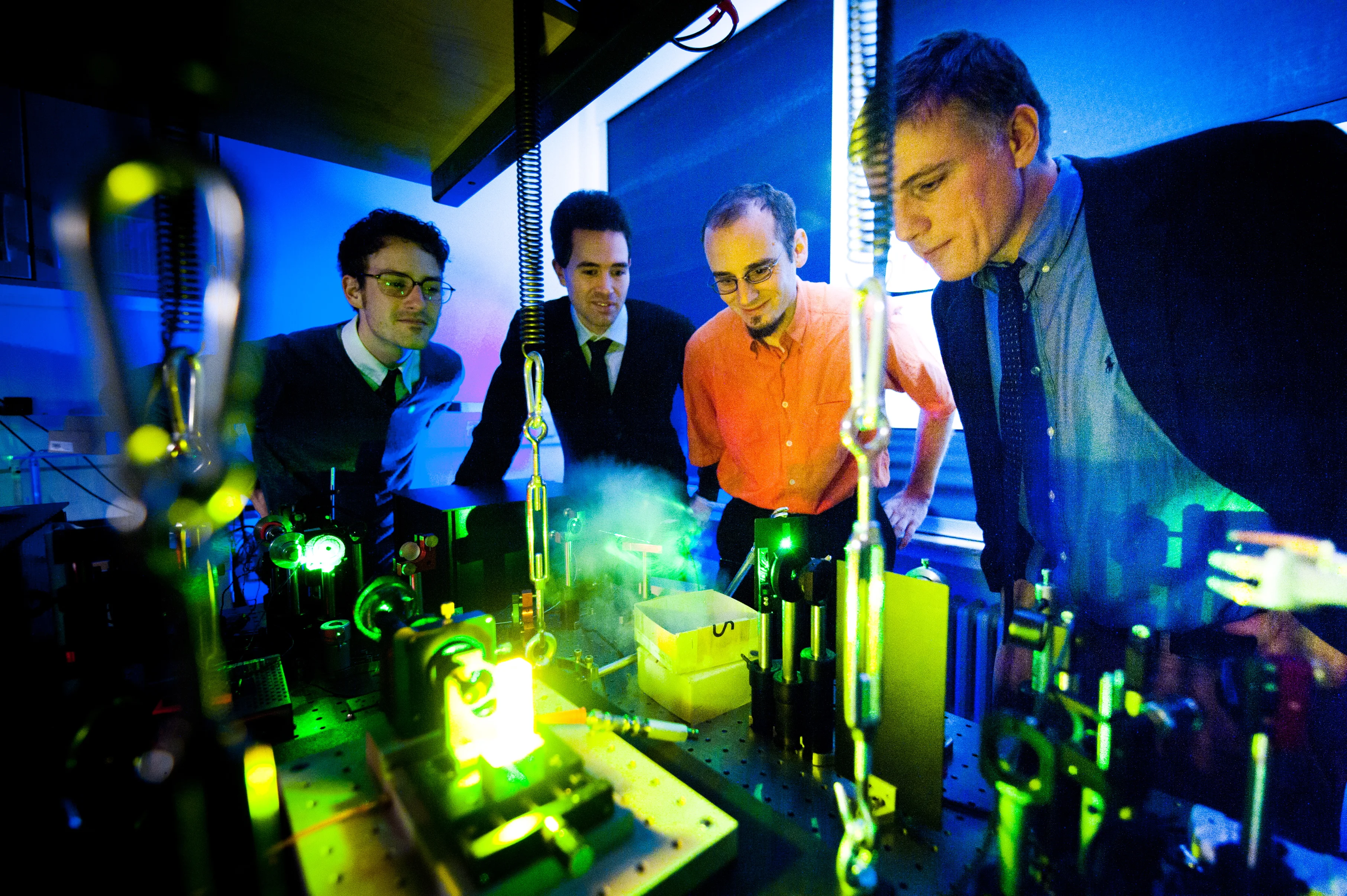 Die Schöpfer des „Super-Photons“ (von links): Julian Schmitt, Jan Klärs, Dr. Frank Vewinger und Professor Dr. Martin Weitz