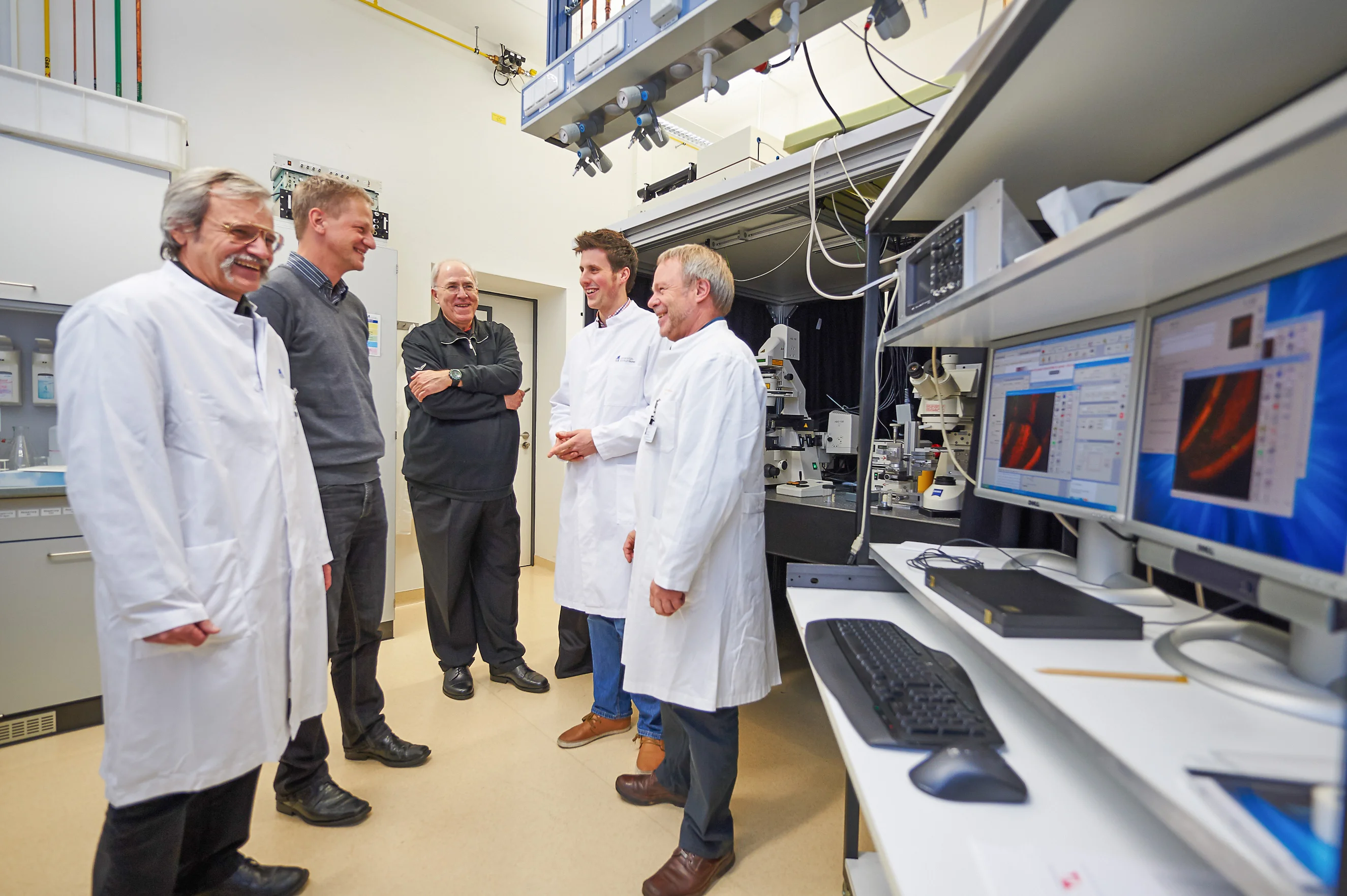 auf Lebewesen: Prof. Dr. Rainer Meyer, Prof. Dr. Hanns Häberlein, Prof. Dr. Dieter Swandulla, Andre Deutschmann und Dr. Michael Hans (von links).