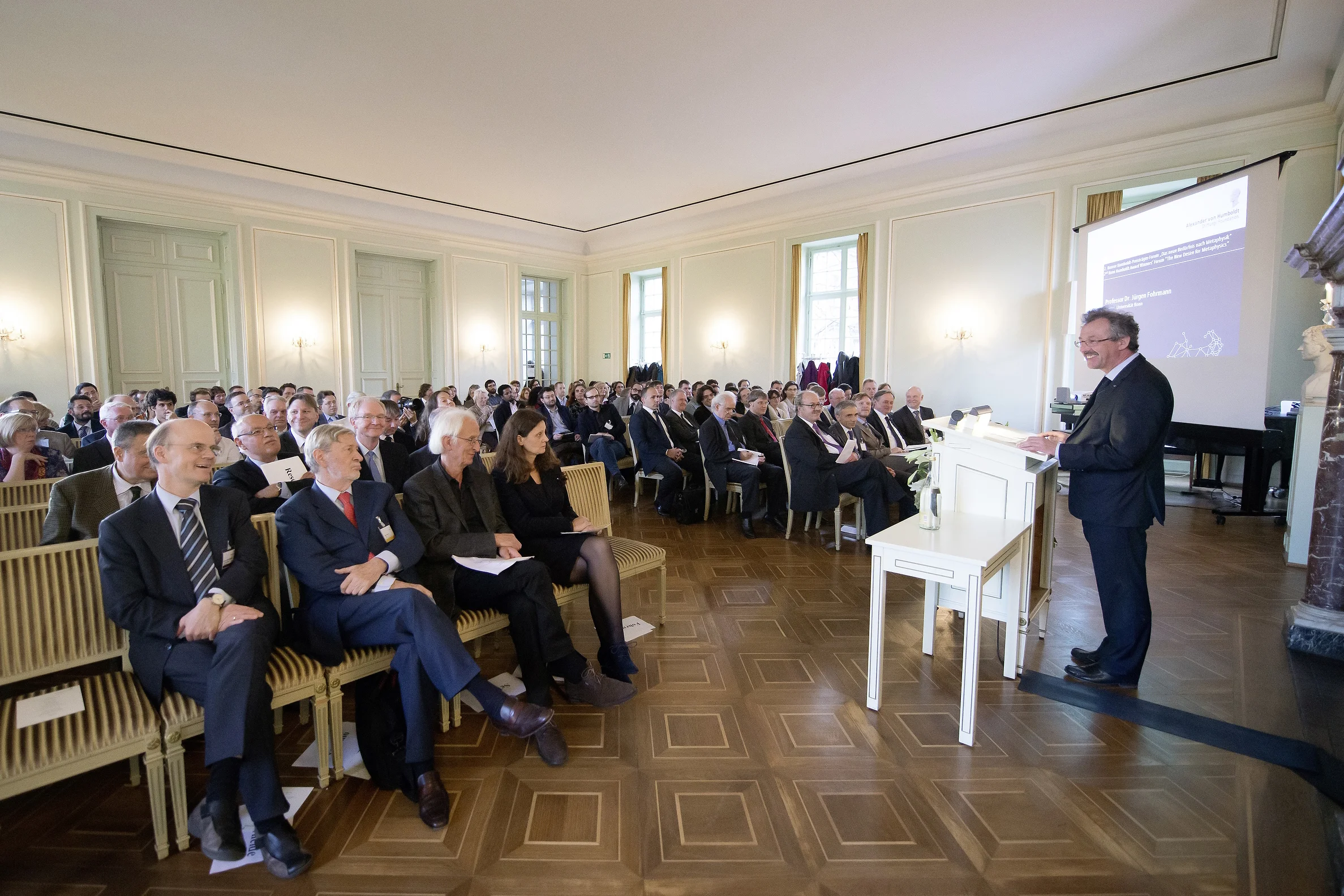 Prof. Dr. Jürgen Fohrmann, Rektor der Universität Bonn, eröffnete das Humboldt-Preisträger-Forum im Festsaal des Uni-Hauptgebäudes.