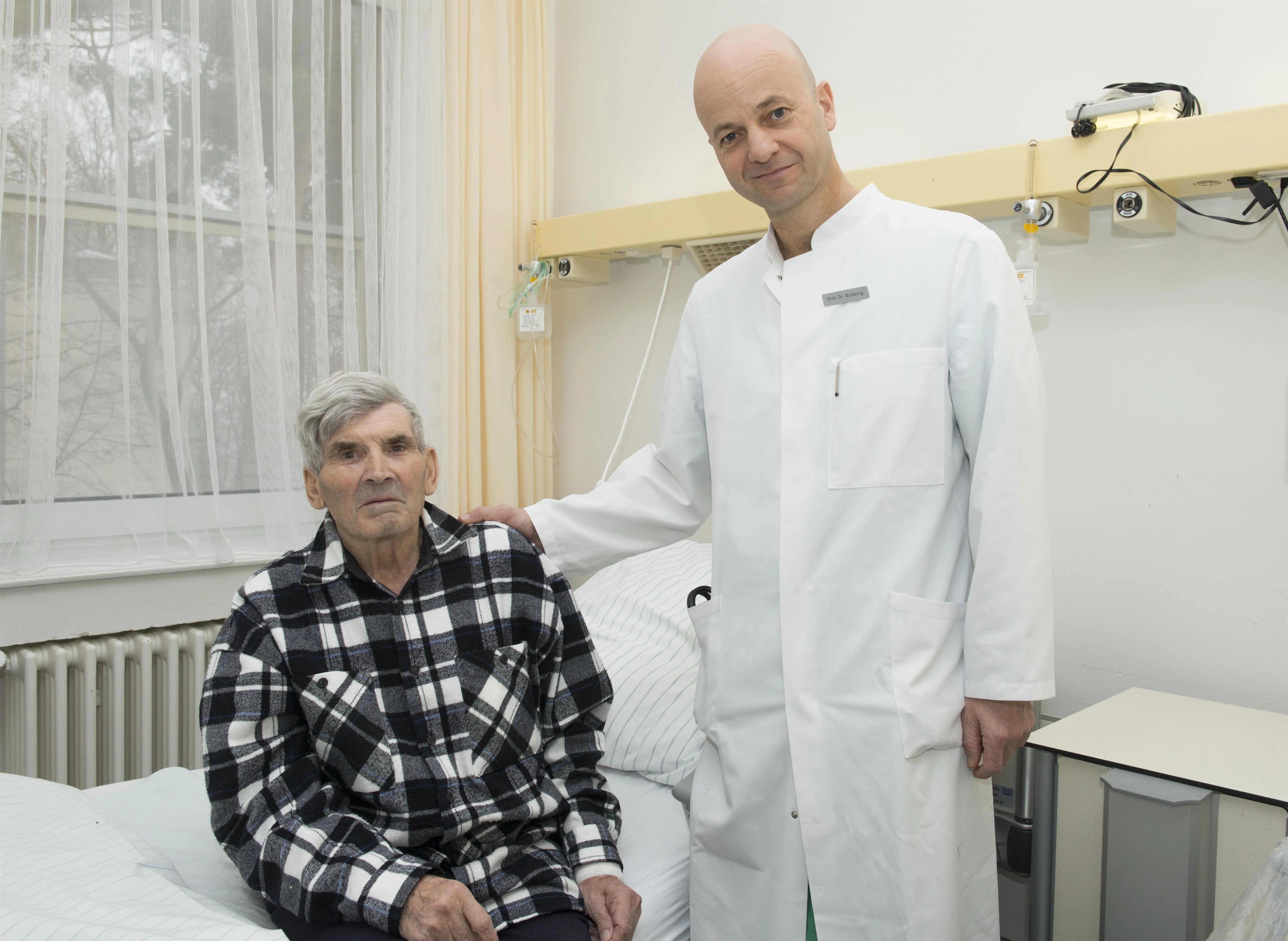 Prof. Nickenig (re) erklärt seinem Patienten den Eingriff;