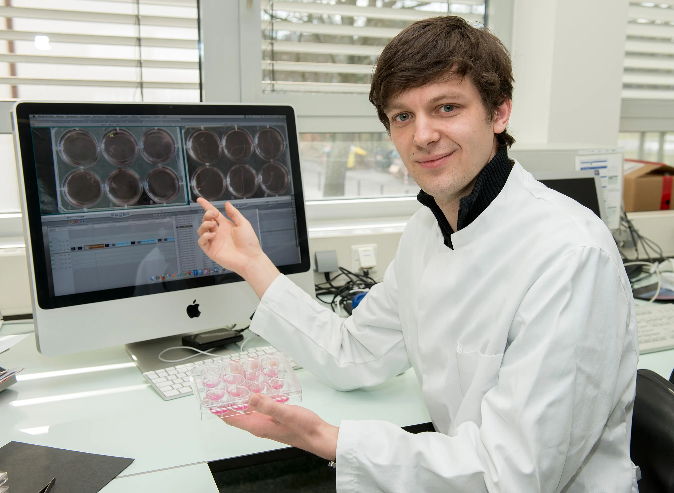 vergleicht am Computer Aufnahmen von Würmern, die mit wALADin1 behandelt wurden, mit einer unbehandelten Kontrollgruppe.