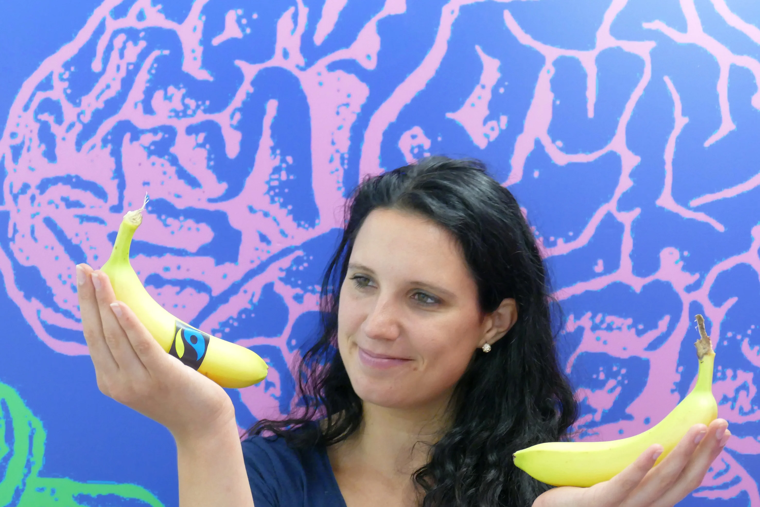 ist für Verbraucher keineswegs Banane. Hier zeigt die Erstautorin der Studie Laura Enax die Früchte, die den Teilnehmern der Studie angeboten wurden.