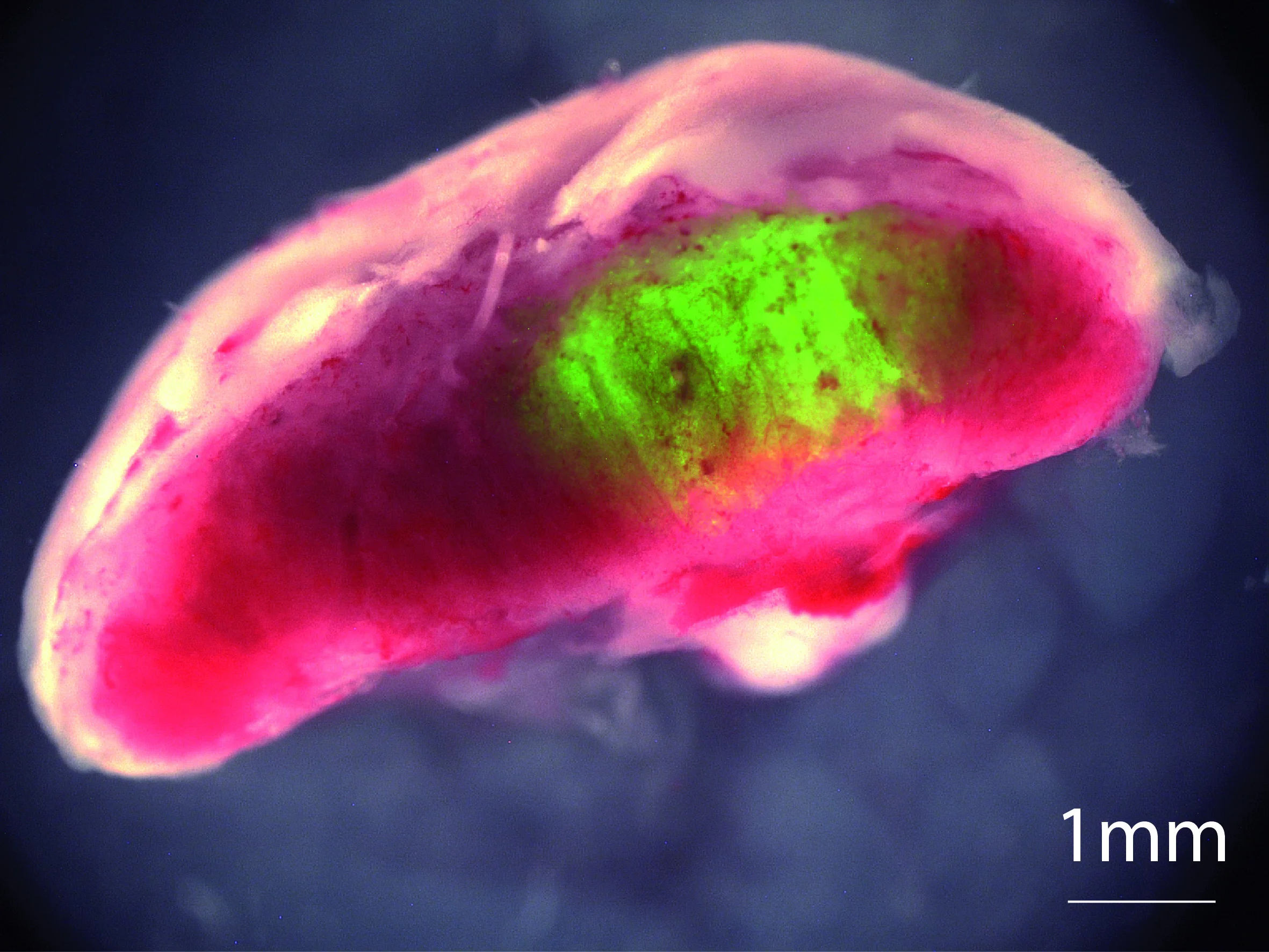 Bindegewebszellen in Stammzellen der Plazenta umzuwandeln. Auf diesem Foto einer Maus-Plazenta sind die umgewandelten Zellen grün angefärbt.