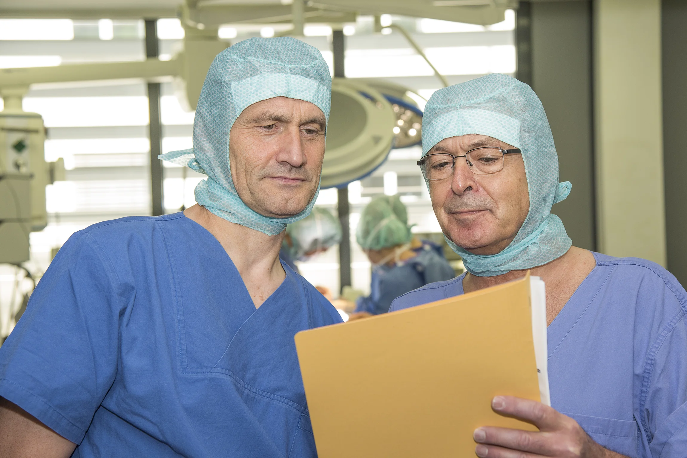 Im Operationssaal: Das Kinderchirurgen-Duo (v. li) Dr. Andreas Heydweiller und Dr. Haitham Bachour; im-operationssaal.webp image/webp Typ image/webp Dimension Abmessungen 2300x1535 Size Dateigröße 356.2 KB Herunterladen Bild in voller Größe anzeigen…