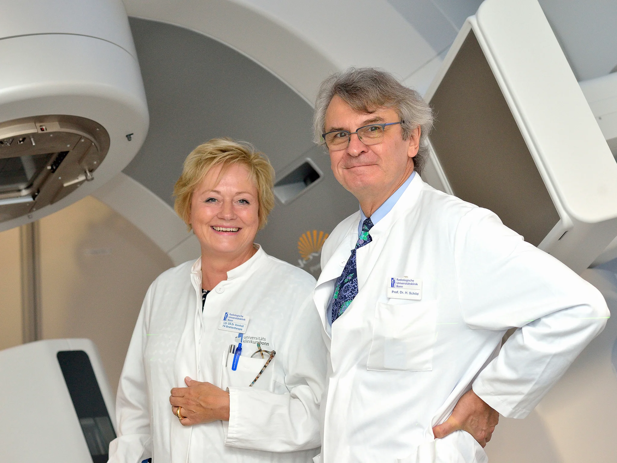 (v. li): Leitende Strahlentherapeutin Dr. Susanne Vornholt und Klinikdirektor Prof. Dr. Hans Heinz Schild freuen sich über den neuen High-Tech-Linearbeschleuniger an der Radiologischen Klinik des Universitätsklinikum Bonn;