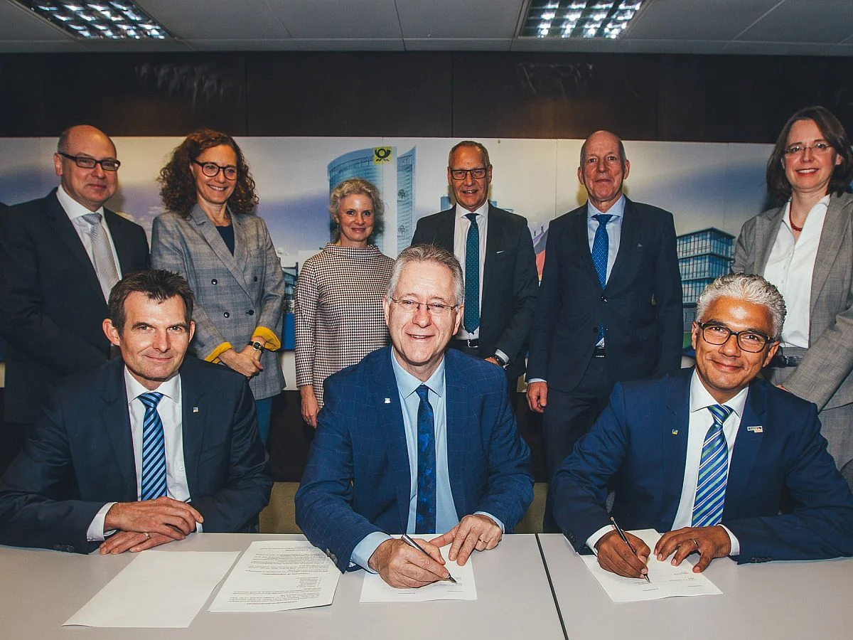 (V.l.n.r.) Sitzend: Kanzler Holger Gottschalk, Rektor Michael Hoch und Oberbürgermeister Ashok Sridharan. Stehend: Stadtbaurat Helmut Wiesner, Carolin Krause, Dezernentin für Soziales, Jugend und Schule, Stadtkämmerin Margarete Heidler, Stadtdirektor Wolfgang Fuchs, Martin Schumacher, Dezernent für Kultur, Sport und Wissenschaft und Victoria Appelbe, Wirtschaftsförderin.