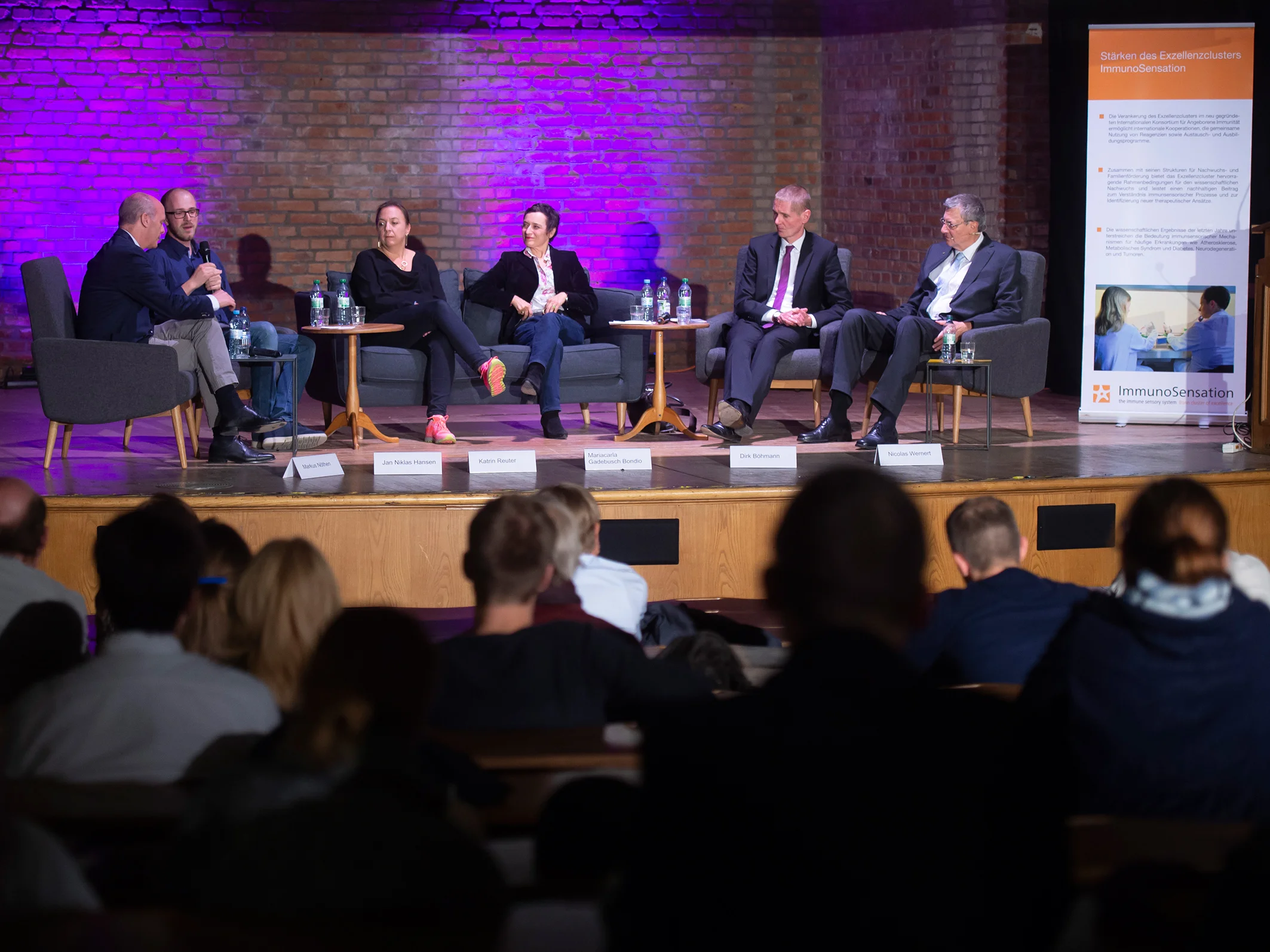 (von links) Prof. Dr. Markus Nöthen, Jan Niklas Hansen, Katrin Reuter, Prof. Dr. Mariacarla Gadebusch Bondio, Prof. Dr. Dirk Böhmann und Prof. Dr. Nicolas Wernert.