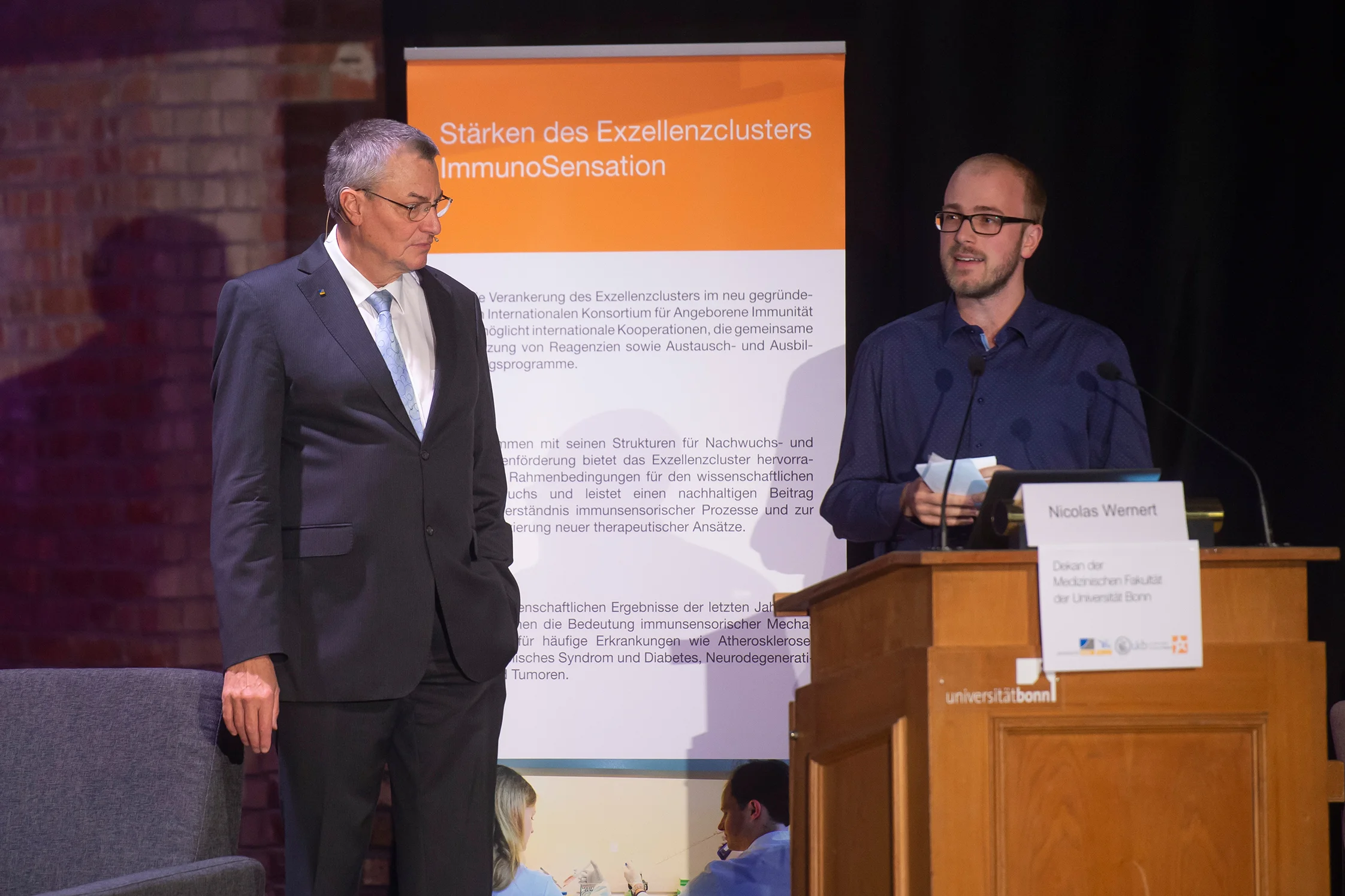 Doktorand am Institut für Angeborene Immunität und Forscher des Exzellenzclusters ImmunoSensation, moderierte die Podiumsdiskussion.