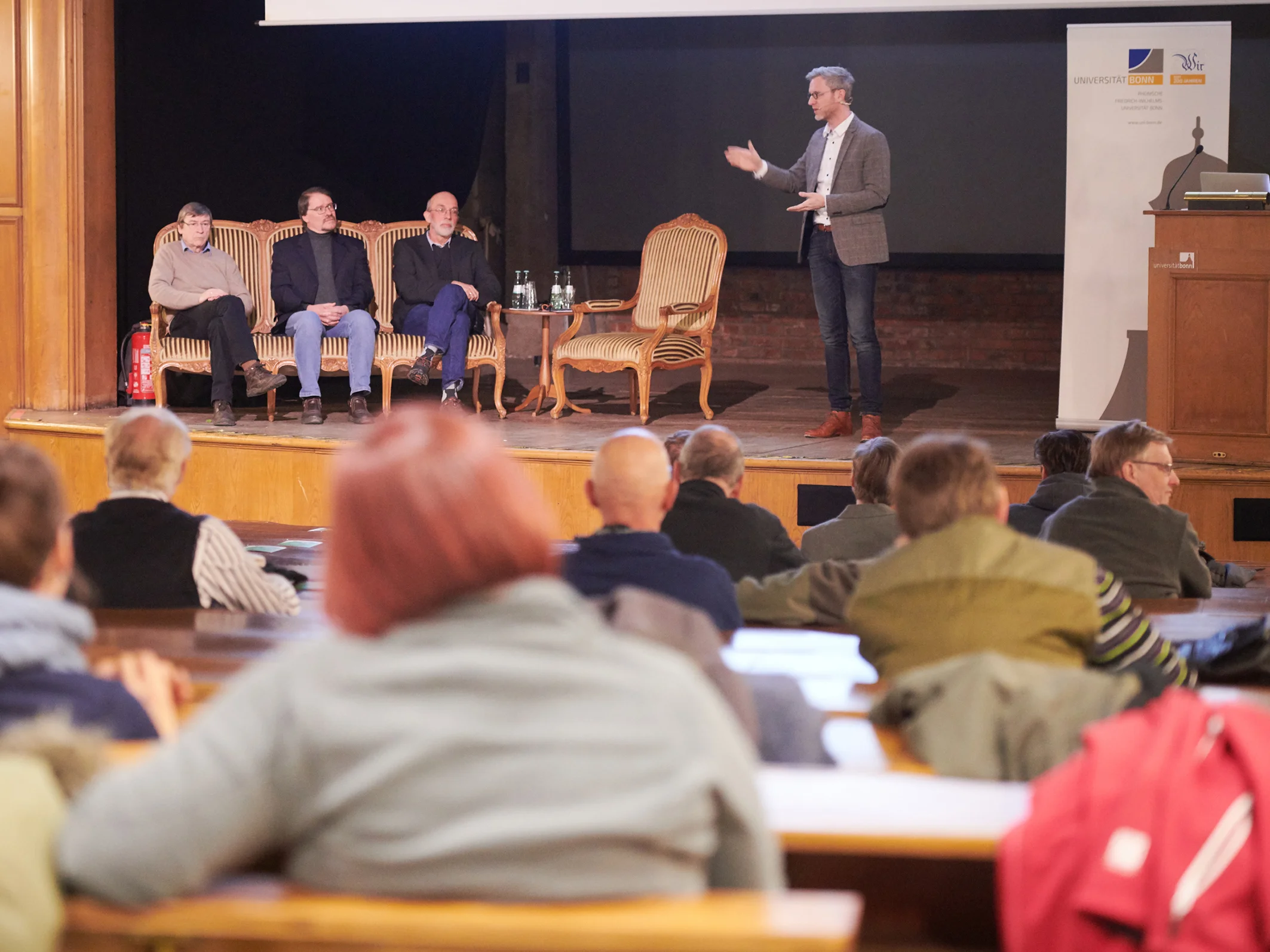 informierten sich bei der Podiumsdiskussion in Hörsaal I des Universitäts-Hauptgebäudes über die globalen und lokalen Aspekte des Klimawandels.