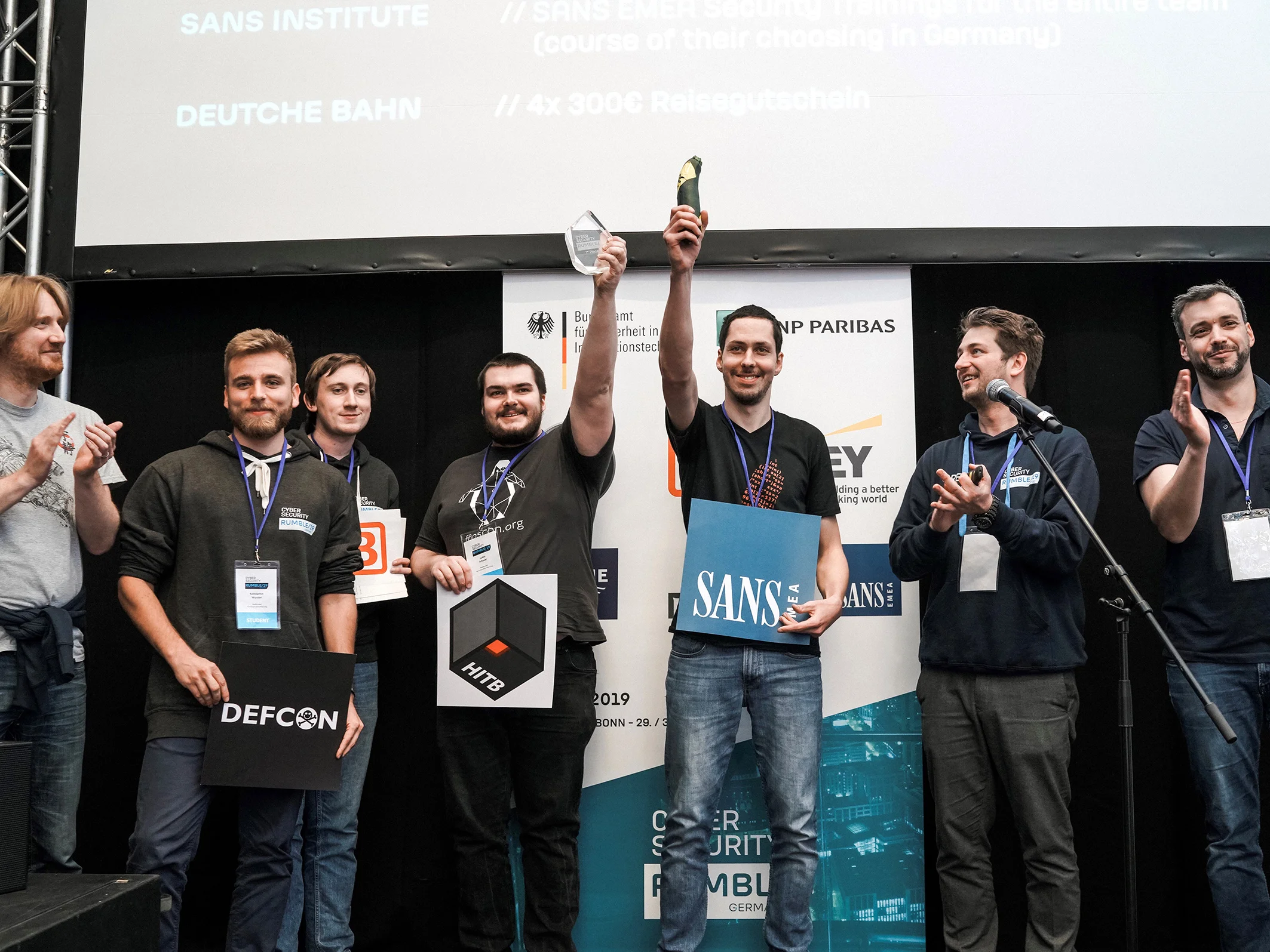 Prof. Dr. Matthew Smith, Konstantin Wurster, Manfred Paul, Lukas Schauer (mit Pokal), Ruben Gonzalez, Oliver Nettinger und Pierre-Alain Mouy (beide von NVISO).