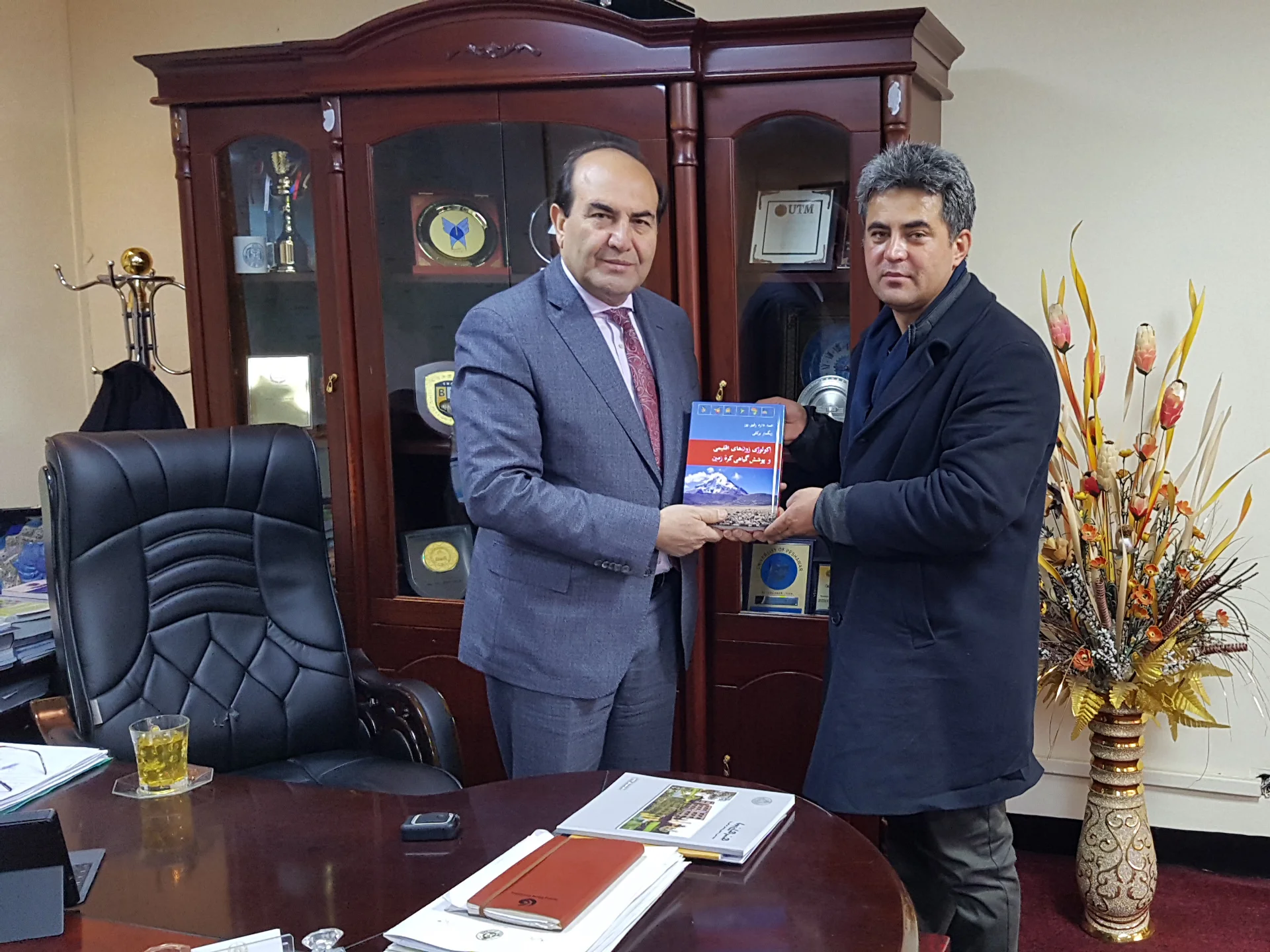 Prof. Dr. Sardar Kohistani (rechts) händigt dem Präsidenten der Uni-Kabul Prof. Hamidullah Farooqi das Ökologie-Lehrbuch in Dari aus.