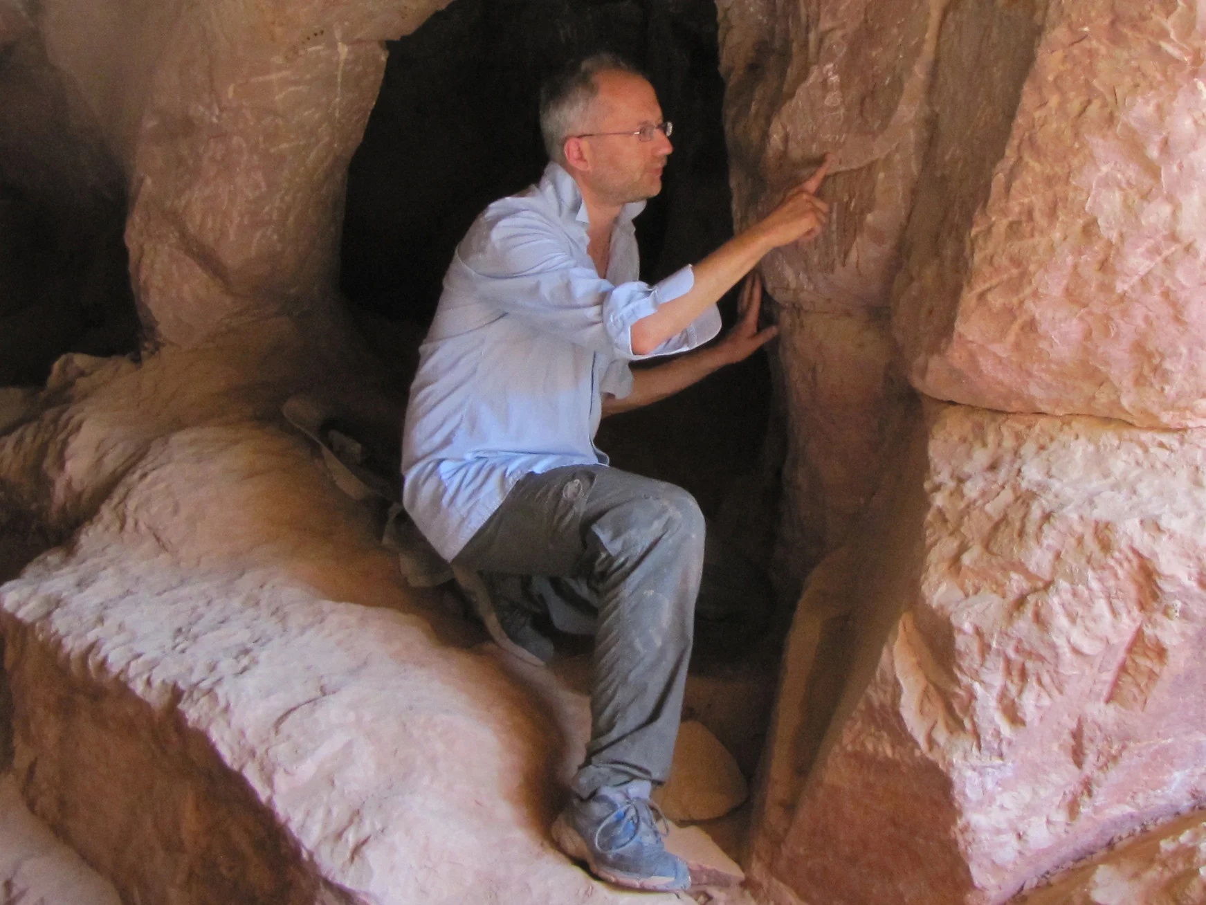 bei der Untersuchung einer frühalphabetischen Inschrift in einer der Türkisminen auf dem Hochplateau von Serabit el Chadim.