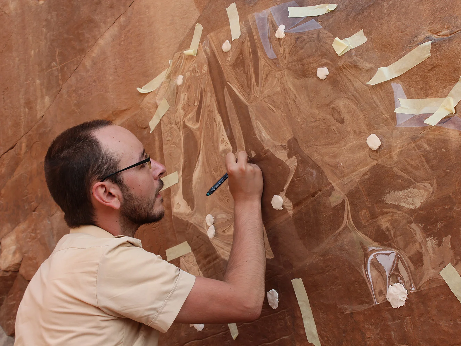 beim Kopieren einer der über 40 Inschriften am Felsweg von Rod el Air – einem der wenigen Aufstiegspunkte zum Hochplateau von Serabit el Chadim.
