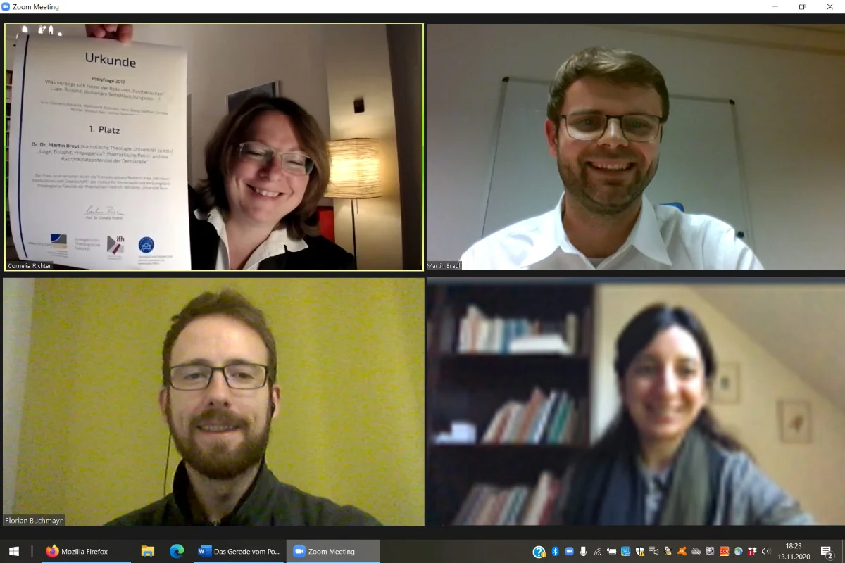 presented the awards virtually to Dr. Martin Breul (1st place, top right), Florian Buchmayr (2nd place, bottom left) and Eytan Celik (3rd place, bottom right)