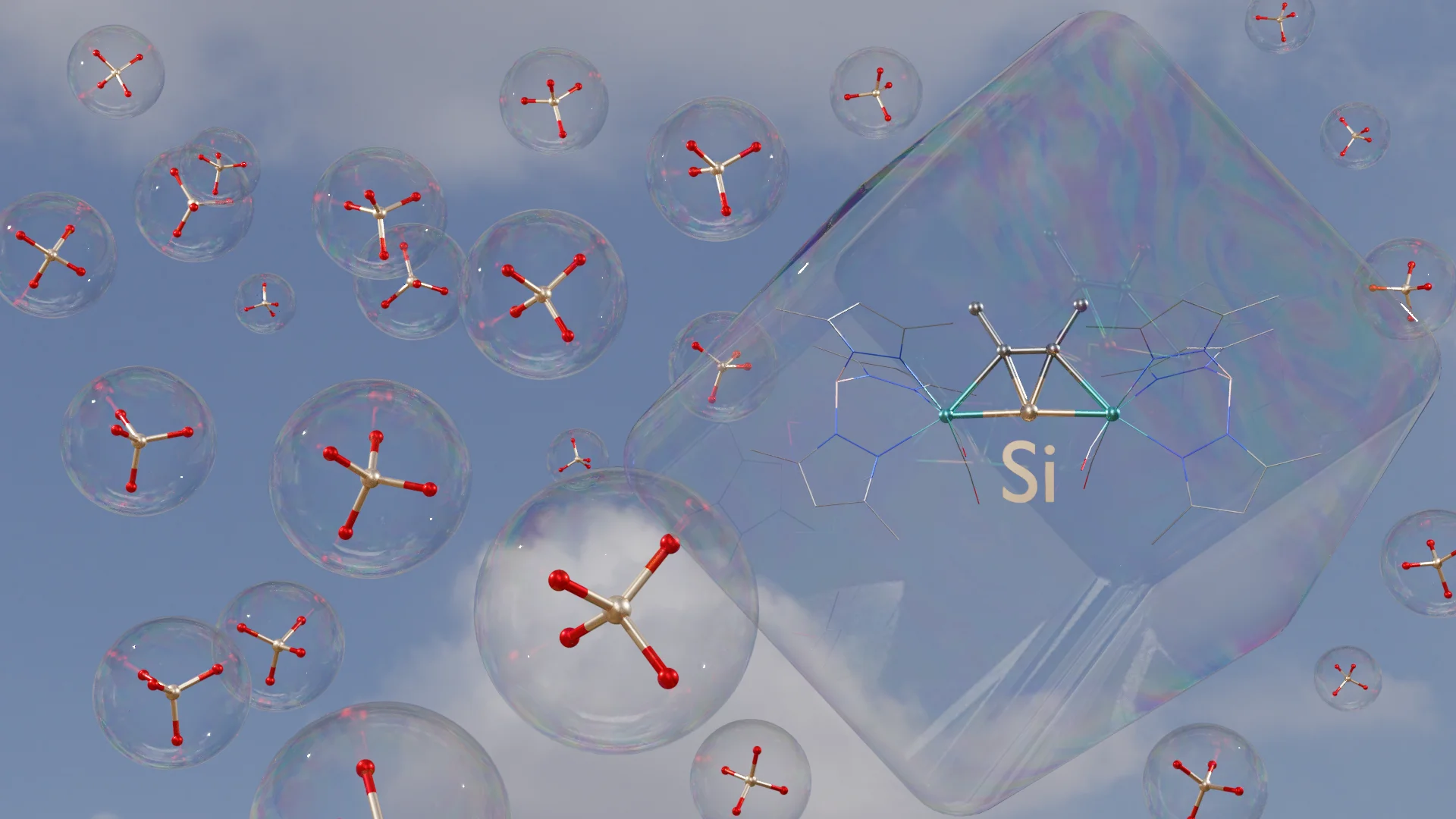 3D representation of one of the new molecules. Silicate ions in tetrahedral arrangement can be seen in the spherical soap bubbles for comparison. ptSi-bubbles-V1.png.webp image/webp Type image/webp Dimension Dimension 1920x1080 Size File size 103.1 KB Download View full-size image
