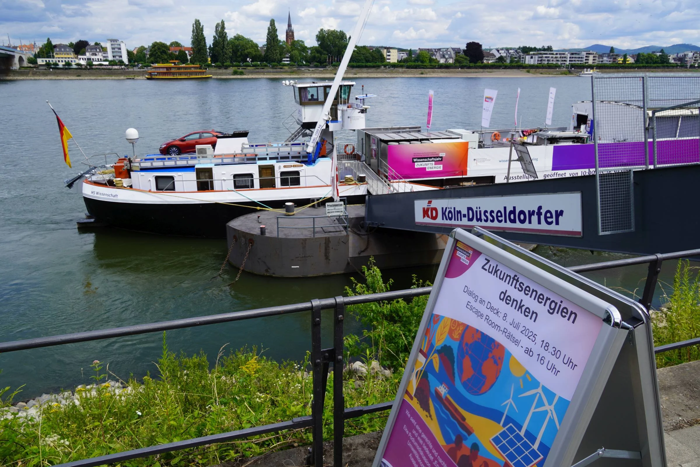 On July 8, 2025, the University of Bonn invited guests to a dialogue on deck entitled “Thinking about Future Energies” on the deck of the MS Wissenschaft.