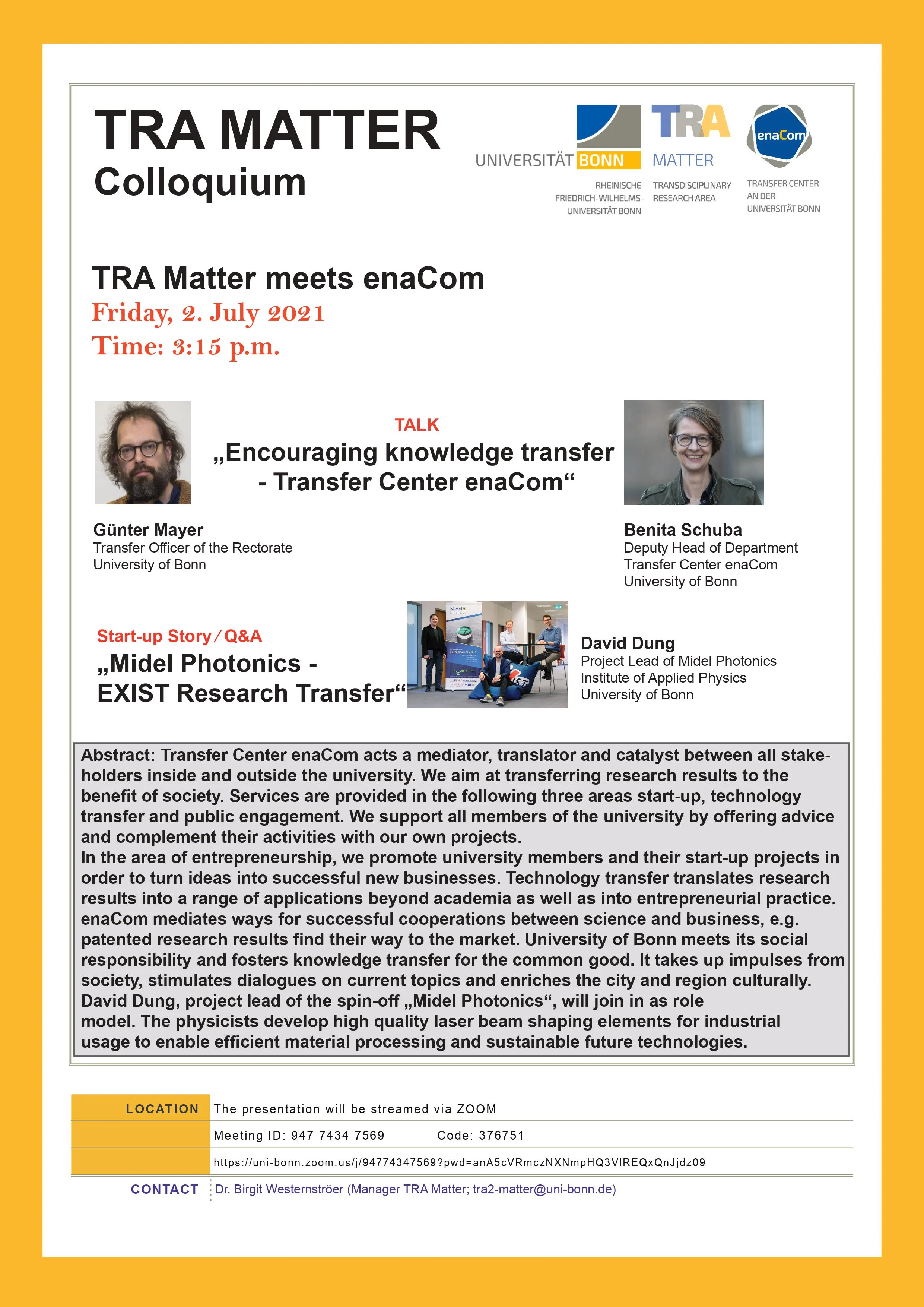 The event was jointly organized by the Transdisciplinary Research Areas Matter and Individuals, Institutions and Societies, together with the Transfer Center enaCom.