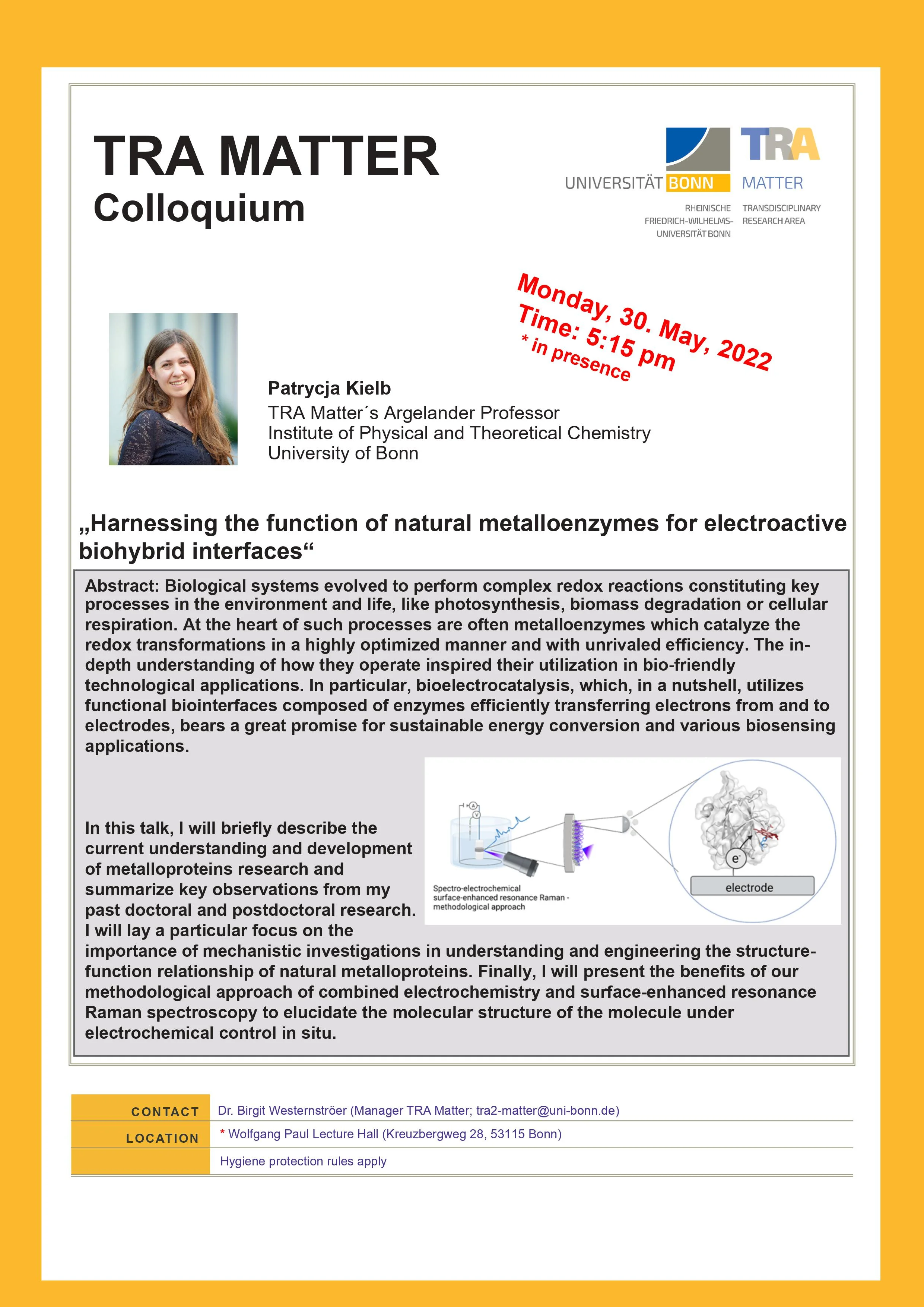 On September 27, 2022, TRA Matter had its first on-site networking meeting in the Clausius-Institute for Physical and Theoretical Chemistry. Almost 40 TRA members folllowed the invitation of the TRA speakers Prof. Ulrike Thoma and Prof. Peter Vöhringer. The day was dedicated to exchange, networking and the promotion of interdisciplinary research and collaboration within TRA Matter. During the event, poster sessions and presentations on projects funded by TRA Matter were held. The TRA speakers and management team are very pleased with the intense and productive atmosphere at this event and look forward to possible exciting projects developing from it.