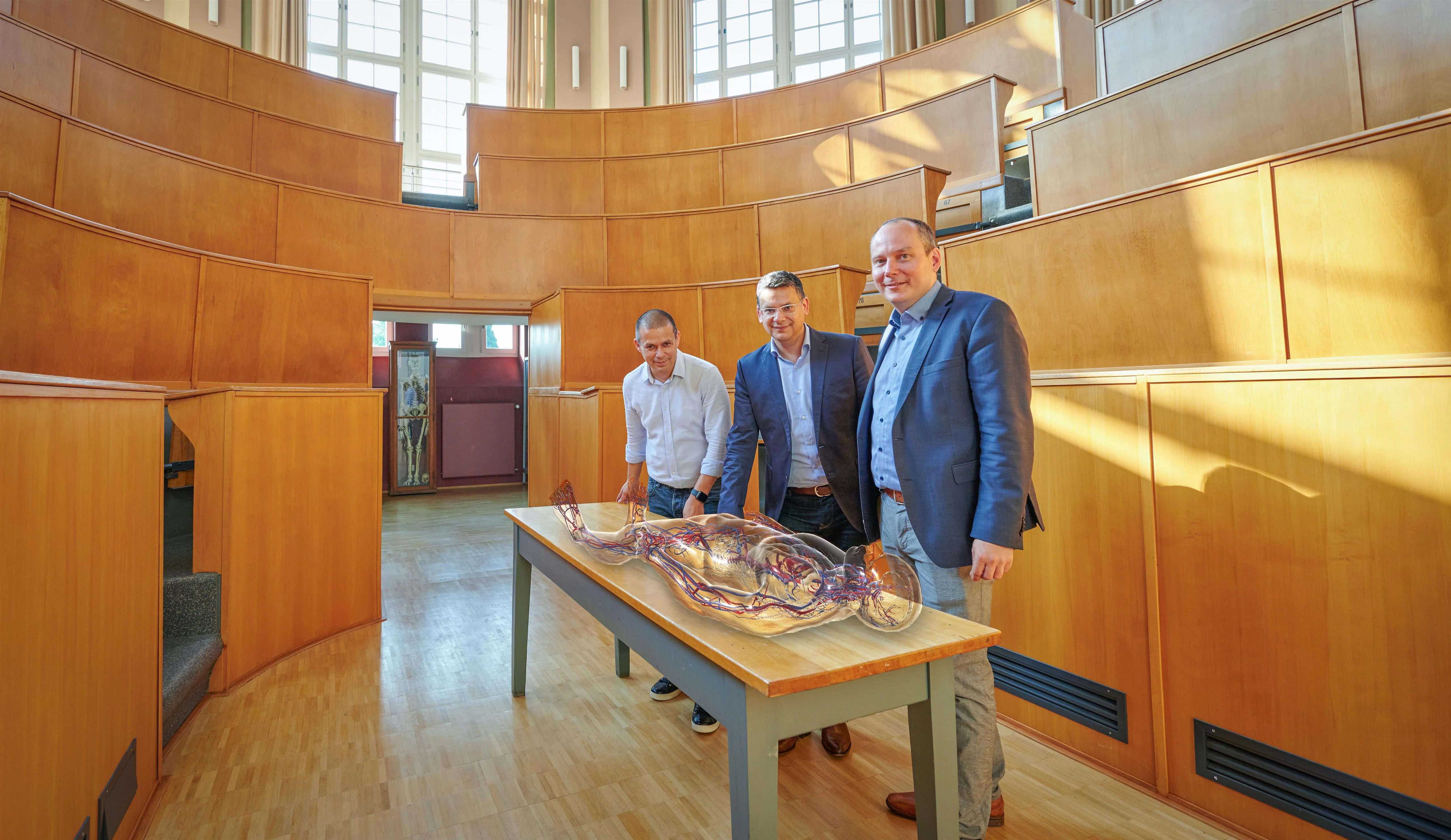 Augmented 3D Body Reality (from left) Rodrigo Olmos, Pablo Olmos and Bernd Weber in the lecture hall of the old institute of anatomy. uni_vl_AR_26010619_11.jpg.webp image/webp Type image/webp Dimension Dimension 5120x2964 Size File size 1.0 MB Download View full-size image